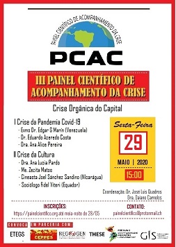O Painel Científico de Acompanhamento da Crise é um espaço de encontro virtual que tem como objetivo acompanhar o desenvolvimento da crise, fornecendo análises sobre sua origem, importância e significado como expressão da Crise Orgânica do Capital.