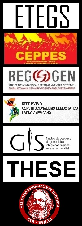 A convocatória partiu do grupo de pesquisa do CNPq em Educação, Trabalho, Economia Global e Sustentabilidade (ETEGS) junto ao Centro de Educação Popular e Pesquisas Econômicas e Sociais (CEPPES), em parceria com a Cátedra e Rede da Unesco sobre Economia Global e Desenvolvimento Sustentável (REGGEN); a Rede Internacional para um Constitucionalismo Democrático Latino-americano; o projeto de pesquisa O Ensino Médio no Brasil e sua (im)possibilidade histórica: determinações culturais, políticas, econômicas e legais do PPFH-UERJ; o grupo do CNPq/UERJ-UFF-FIOCRUZ Trabalho, História, Educação e Saúde (THESE); o grupo Geopolítica, Integração Regional e Sistema Mundial da CLACSO e o Núcleo de Pesquisa da UFRJ sobre Geopolítica, Integração Regional e Sistema Mundial (GIS/UFRJ); a Cátedra Livre de Estudos Latino-americanos do Equador; e o Grupo Interdisciplinar Marxista da UNILAB (GIM-UNILAB).
